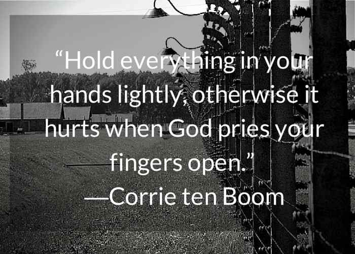 She was a woman from Holland, she was a gentle and kind Christian woman. She was a watchmaker (the first woman) with her daddy. Her family and herself loved the Jewish people dearly, this love and faith in Christ drove them to help the Jews during the war. One night there was a knock on their door, and a man stood there looking desperate and pitiful. He told Corrie a very heart wrenching story about his wife that had been arrested because she was helping the Jews. He told her that his wife was very sick and the bail was 600.00. Corrie counted her money she only had 200.00 I believe she said. So, she went around to all her friends urging them to help this man’s loving wife.