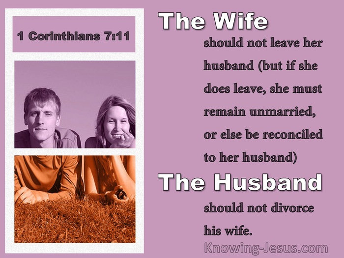 10And unto the married I command, YET NOT I, BUT THE LORD, Let not the wife depart from her husband: 11But and if she depart, let her remain unmarried, or be reconciled to her husband: and let not the husband put away his wife.