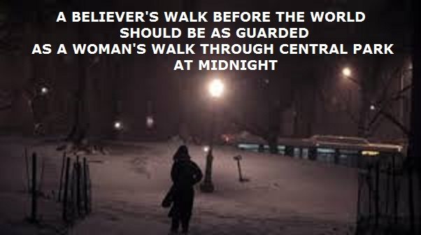 A young bride or wife should not walk through Central Park at midnight indiscriminately or foolishly prating about (To talk idly and at length; chatter) with suspicious, unsavoury or dangerous characters. Neither should The Bride of Christ walk through this world with a careless, everything will be O.K attitude, as though their words and actions had no effect on their witness or their spiritual growth, development or life.
