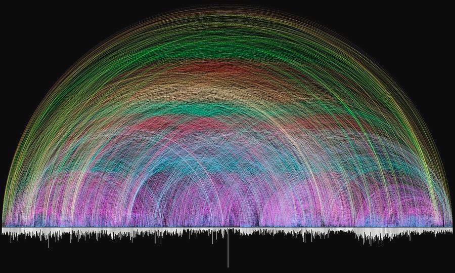 This might be the most amazing data picture you see in a lifetime! It shows the 63,779 cross-references in the Bible. The white bars along the bottom represent each Bible chapter, Gen. 1 – Rev. 22. The line’s color shows the reference’s distance from the other. A cross-reference is a scripture that references another scripture. Had the Bible been written by one person or at one time this would still be amazing; however, the Bible was written by 40 authors over the span of 1500 years on 3 different continents.The Bible is complex, diverse, and intricate, and yet it has one unified message: God lovingly is redeeming all who believe!