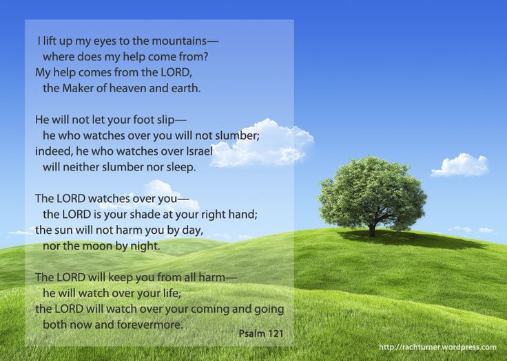 I will lift up mine eyes unto the hills, from whence cometh my help.My help cometh from the LORD, which made heaven and earth. He will not suffer thy foot to be moved: He that keepeth thee will not slumber. Behold, He that keepeth Israel shall neither slumber nor sleep. The LORD is thy keeper: the LORD is thy shade upon thy right hand. The sun shall not smite thee by day, nor the moon by night. The LORD shall preserve thee from all evil: He shall preserve thy soul. The LORD shall preserve thy going out and thy coming in from this time forth, and even for evermore.Psalm 121 💕