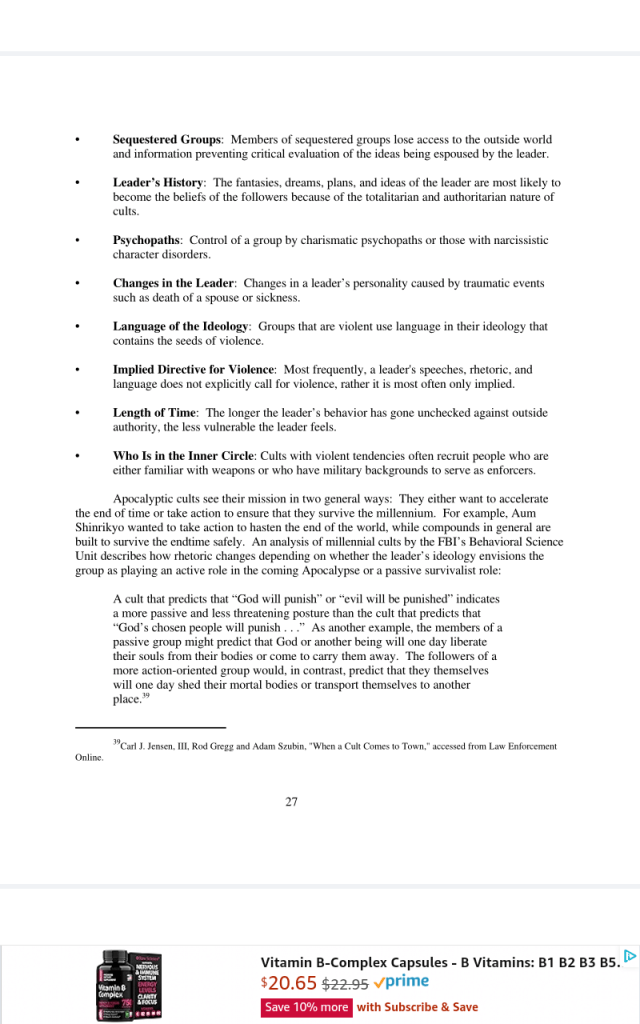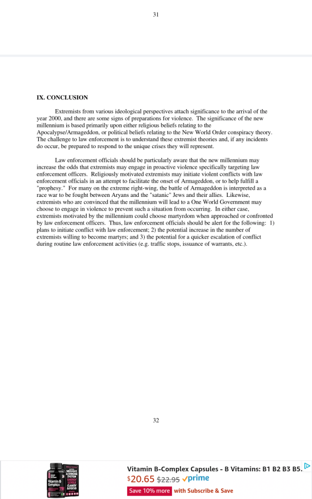 The United States FBI, “Project Megiddo” PDF Joyous N Jesus 1967 Uncategorized July 31, 2024February 4, 2025 1 Minute Share this: Click to share on LinkedIn (Opens in new window) LinkedIn Click to share on Tumblr (Opens in new window) Tumblr Click to share on Pinterest (Opens in new window) Pinterest Click to email a link to a friend (Opens in new window) Email More Click to share on Facebook (Opens in new window) Facebook Like Loading... Related Published by Joyous N Jesus 1967 View all posts by Joyous N Jesus 1967 Published July 31, 2024February 4, 2025