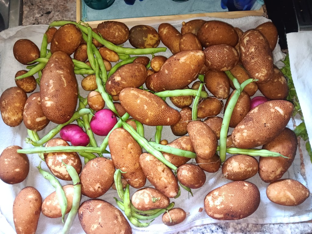I has a nice little harvest today, there will be more in a few days. Not pictured are the tomatoes, cucumbers, and green peppers. I am hoping in about a week there should be zucchini also.