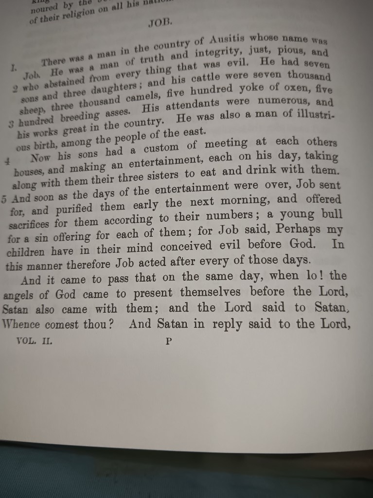 2:1 It happened also vpon a tyme, that when the seruauntes of God came & stode before the Lorde, Sathan came amonge them, and stode before hym.